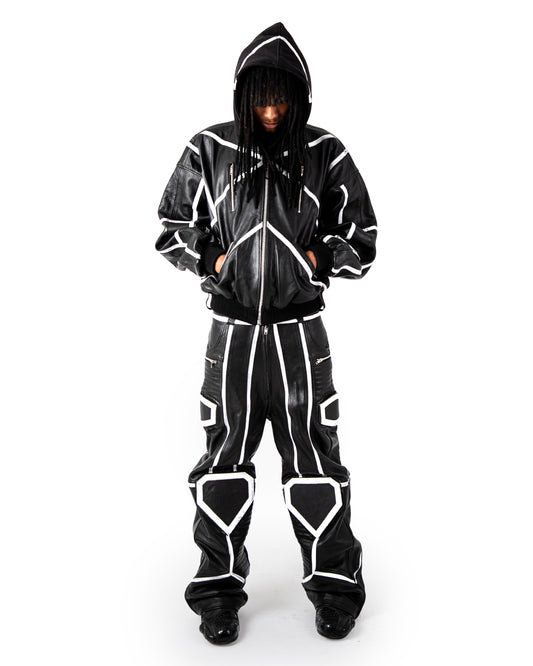 • "PRYZM" LEATHER BOMBER - BLACK/WHITE