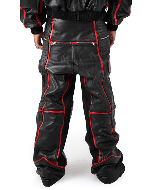 • "PRYZM" LEATHER BOMBER - BLACK/RED