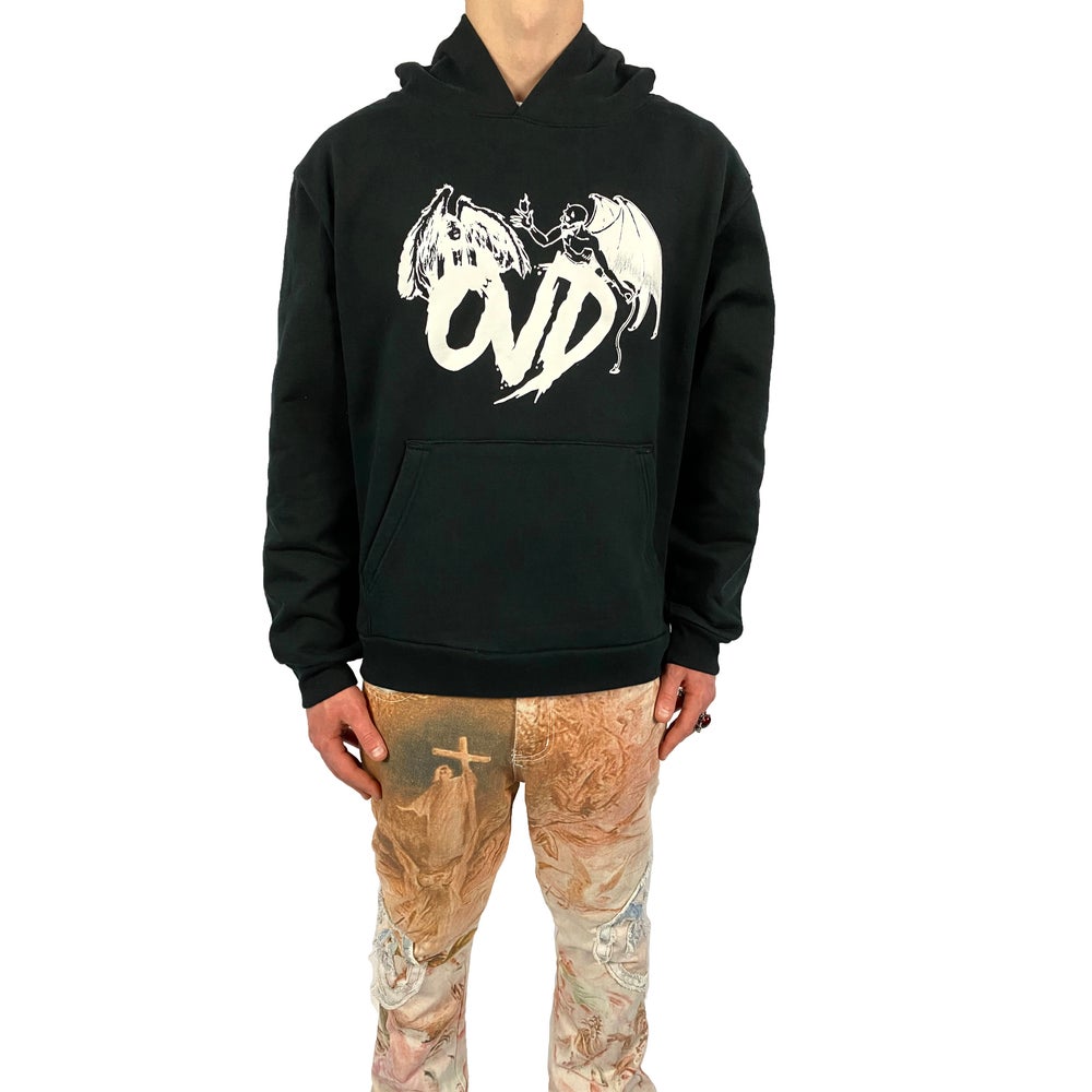 1 OF 30. MODEL IS 6 FT WEARING SIZE "LARGE". 16 OZ HEAVYWEIGHT ORGANIC COTTON HOODIE. SCREEN PRINTED GRAPHICS ON FRONT & BACK INCLUDING ICONIC OVD LOGO. FITS TRUE 222 SIZE. MOST COZY, LUXURIOUS, & LOVING HOODIE YOU'LL EVER OWN, I PROMISE. NO RESTOCKS, EVER. THIS IS PURELY AN ARTIFACT. FREE DOMESTIC SHIPPING. THE LAW OF DIVINE ONENESS IS THE FUNDAMENTAL LAW, BY WHICH ABSOLUTELY EVERYTHING IN OUR UNIVERSE IS INTERCONNECTED. EVERY CHOICE, WORD, DESIRE, AND BELIEF YOU HAVE WILL ALSO HAVE AN IMPACT ON THE WORLD, AND ON THE PEOPLE IN YOUR LIFE. SOMETIMES THIS IMPACT WILL BE IMMEDIATE AND OBVIOUS. AT OTHER TIMES, IT MAY TAKE LONGER TO MANIFEST, OR YOU MAY NEVER EVEN KNOW THE SIGNIFICANCE OF YOUR MANIFESTATIONS. WE ARE ALL ONE. WE ARE ALL DIVINELY CONNECTED. WE ARE HERE FOR A REASON. HAVING THIS TYPE OF AWARENESS MAKES US MORE POWERFUL AS WELL AS MORE EMPATHETIC.