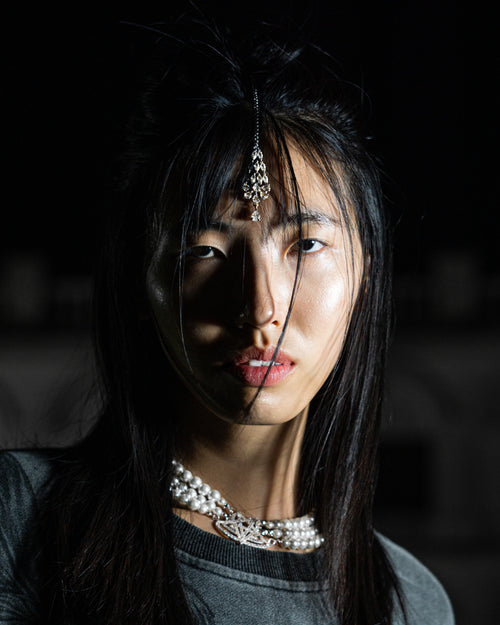 s999turn, our beloved triple stranded vegan pearl necklace — embodied with our s999turn logo and embedded with precision-cut swarovski crystals. one size fits all. pre-made & ready to ship. worldwide shipping.